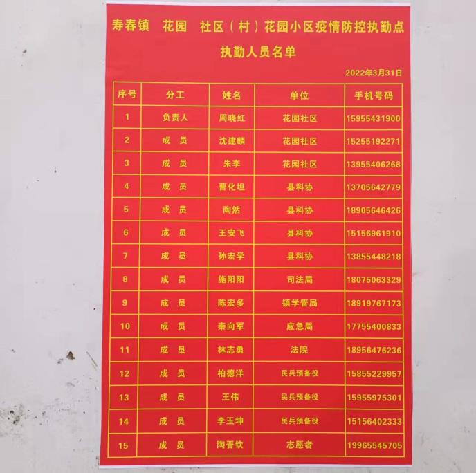 全员参与花园社区卡点疫情防控工作,合理制定工作时间表,要求全体人员按时做好交接班和个人防护,服从社区工作安排,全力配合,助力疫情防控。 (2022年4月1日报道)